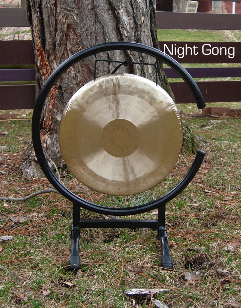 The 11" Night Gong is a gong of alertness. Originally used in villages to alert each other if brigands, robbers, or NBC network executives would be invading the late night to do damage or theft, it is a classic gong of warning.
