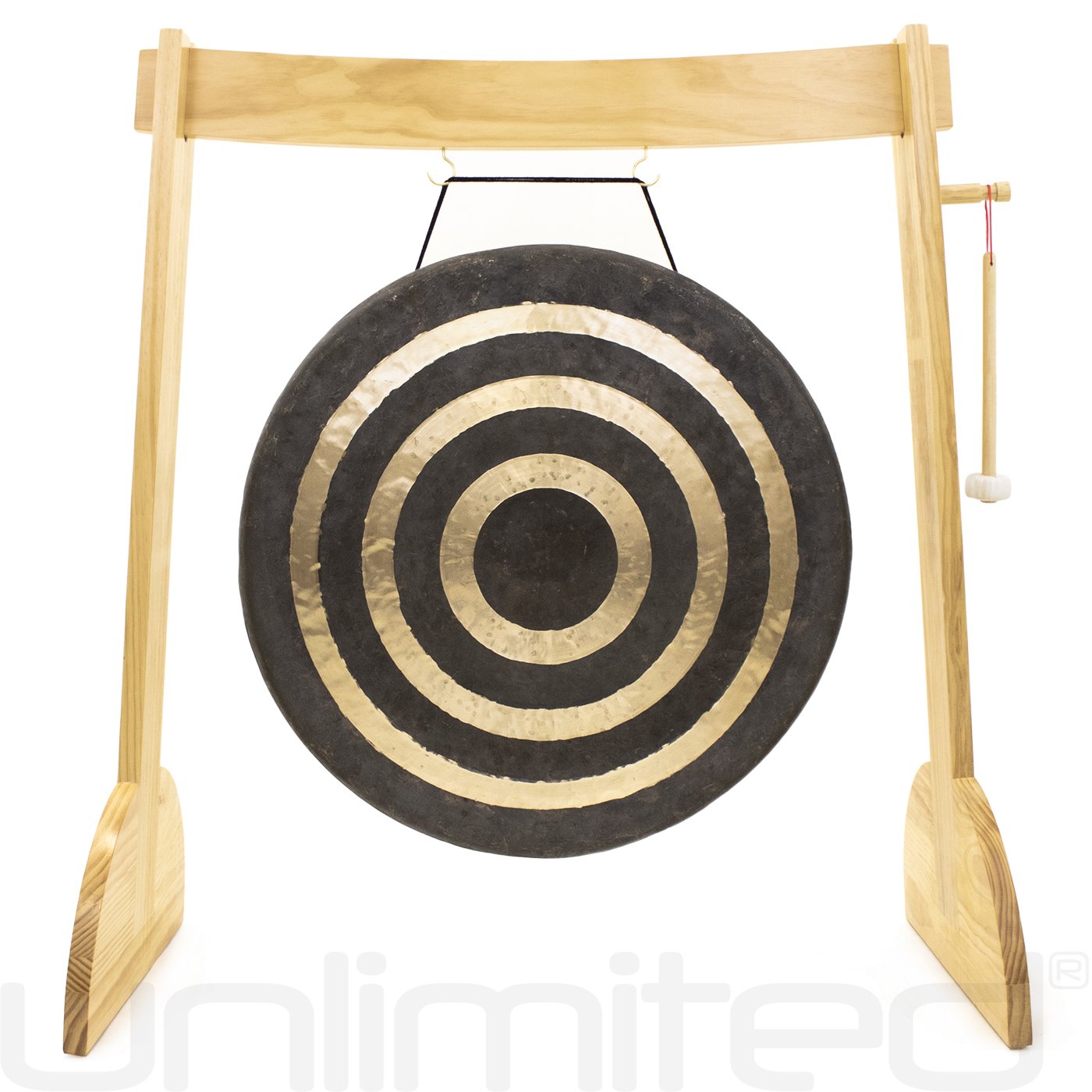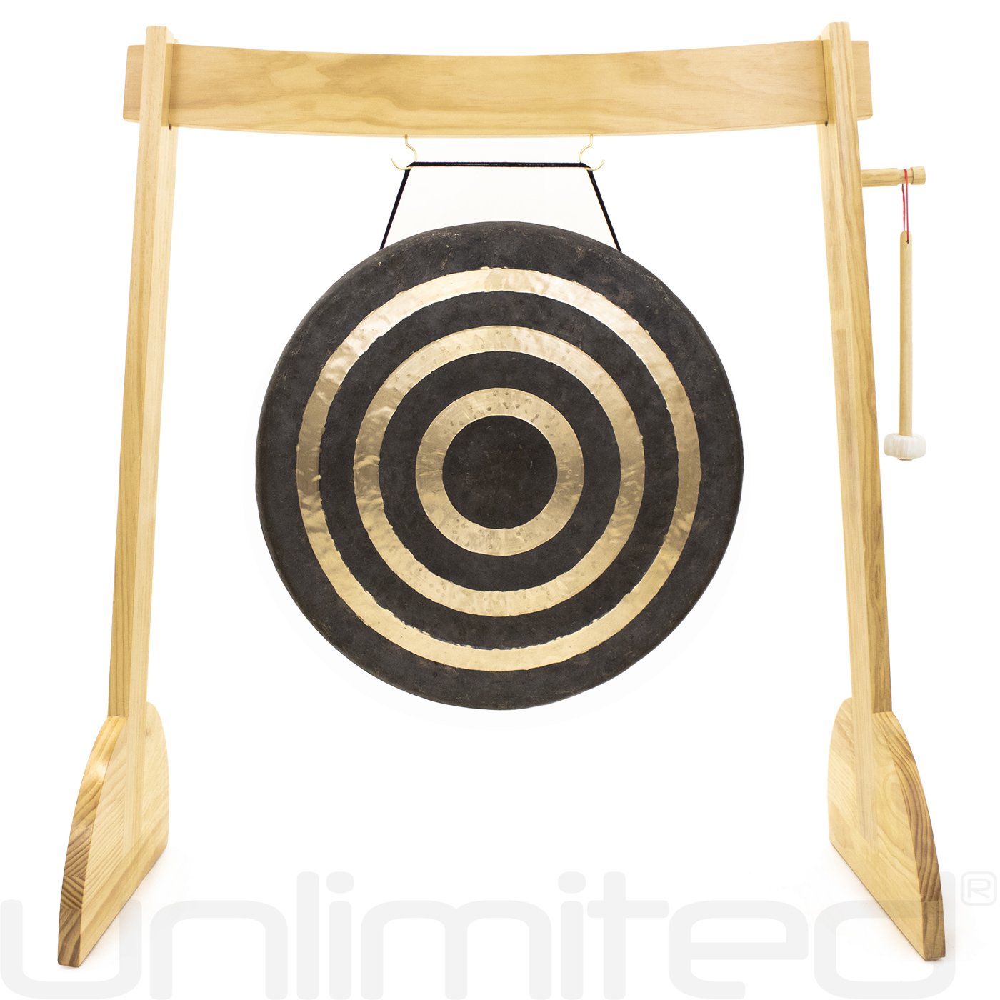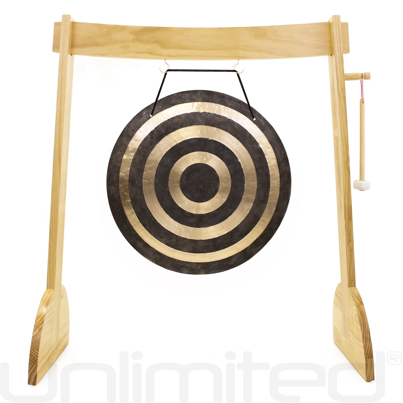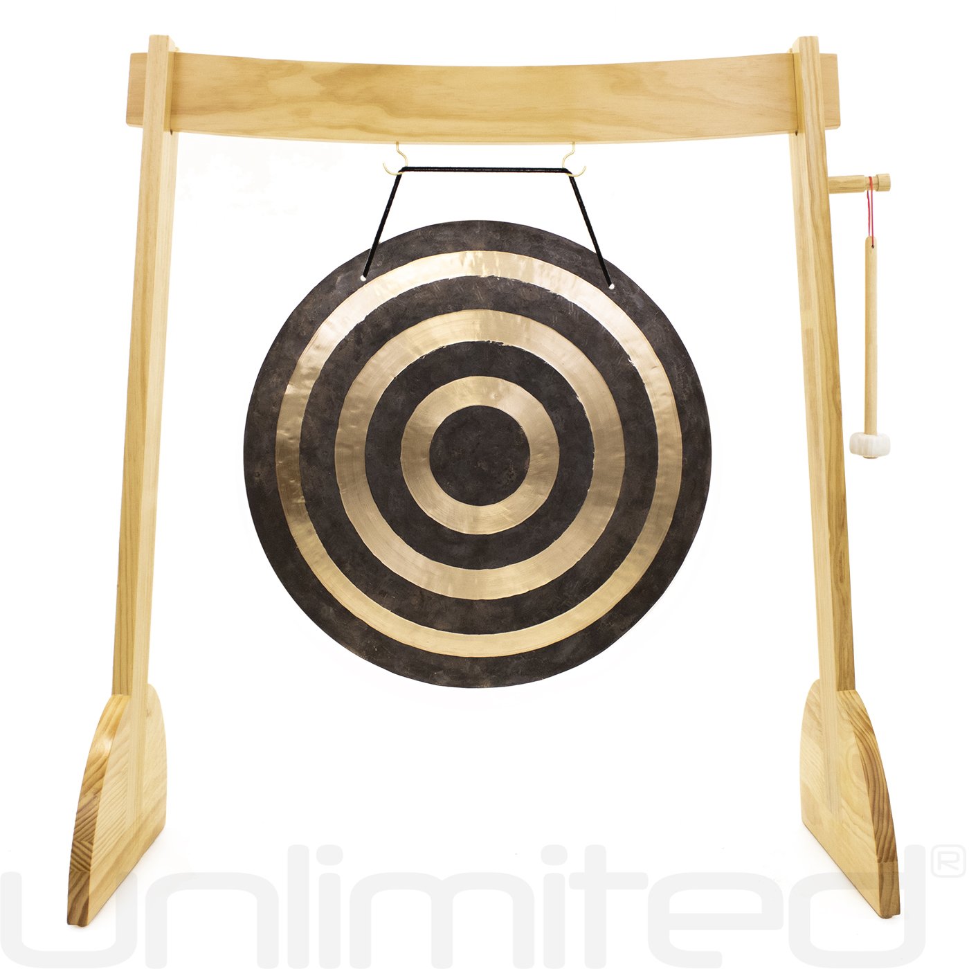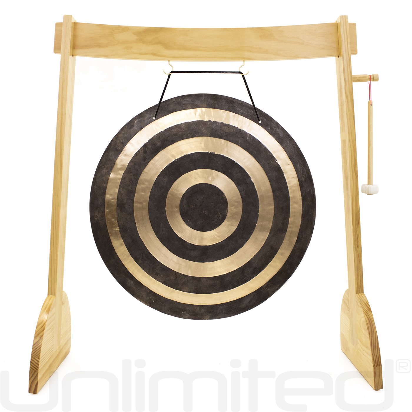 The 32” Chau Gong is iconic in appearance. It is what many people see in their mind’s eye when they think of a Chinese Gong. The bull’s-eye design is created by the metal lathing between the rim of the gong and the center.
